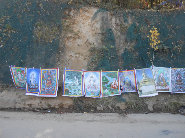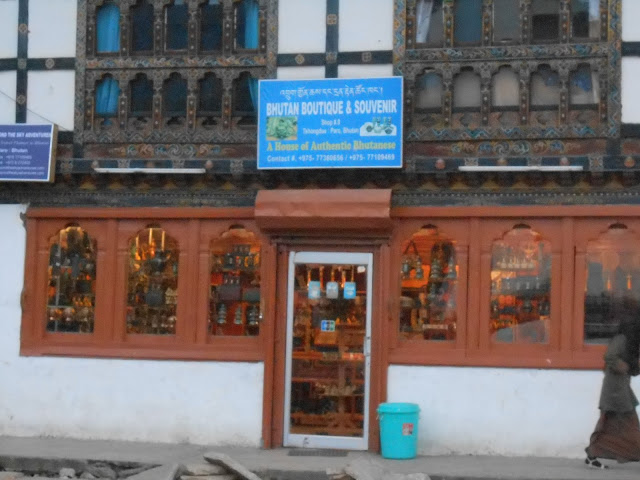 The neat row of shops that lined one end of the road had many interesting titbits, ranging from fire-breathing dragons carved in wood to treen work that included bowls & ladles, handmade soaps & incense-sticks, scarves, stoles & Tangkas, singing bowls, fridge magnets bearing the 8 lucky signs & other landmarks of Bhutan but the ubiquitous among them were those of the winsome King & his graceful Queen.
