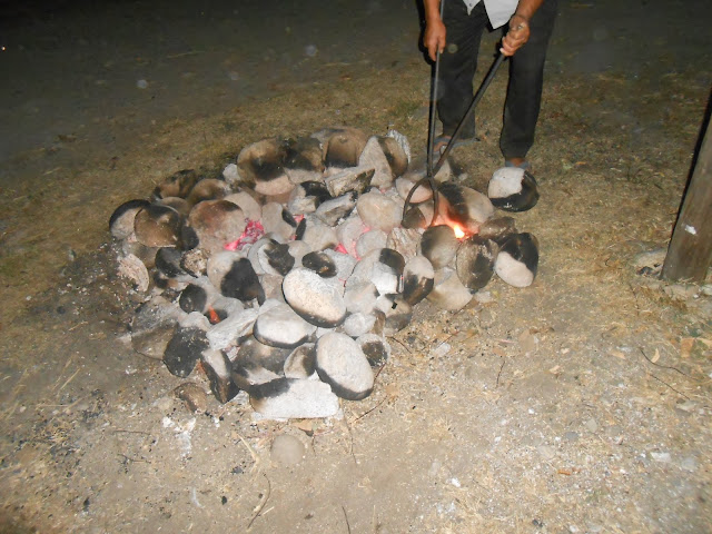 We huddled together on the carpet around an electric heater, whose two out of four sides emitted heat. That was frustrating but we snuggled close to it rubbing our frozen palms, until dinner arrived. And when baked potatoes, Ema Dachi, spicy bitter gourd & rice were dispatched, we gratefully partook of all that we were proffered.