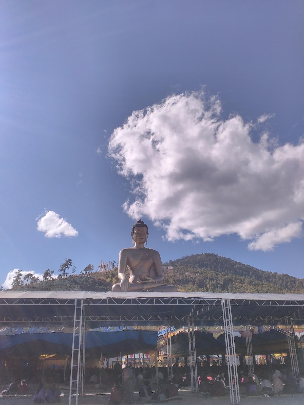 As we inched closer, the pint-sized statue that still conspicuously jutted out of the distant mountains, began to loom large, until it dominated the azure skies. With every turn on the hairpin bend, different facets of the Buddha slowly came to view, until we came face to face with the gargantuan colossi that looked down benevolently upon sentient beings.