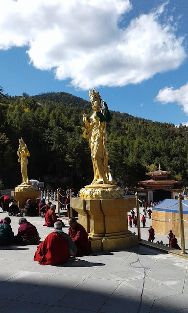 The fragrance of the green turf, the flutter of prayer flags, the distant drone of incantations by an old woman while she turned the prayer wheels & the furtive exit & entry of the monks on their mission, invoked a sense of tranquility & heartsease.