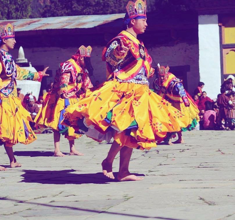 Black Necked Cranes, locally called Thrung Thrung are endangered species that make an autumnal appearance every October, when they fly down to Pobjikha Valley from the Tibetan Plateau to roost till spring, after which they spring back. Interestingly, the birds upon their arrival in October as well as before their departure in February are known to circle the Gompa thrice! To the Bhutanese, these are sacred birds, reincarnated as the two deities believed to protect the valley & their three-fold circling of the Gompha denotes the protecting of the Three Jewels of Buddhism―the Buddha, the Dharma & the Sangha.